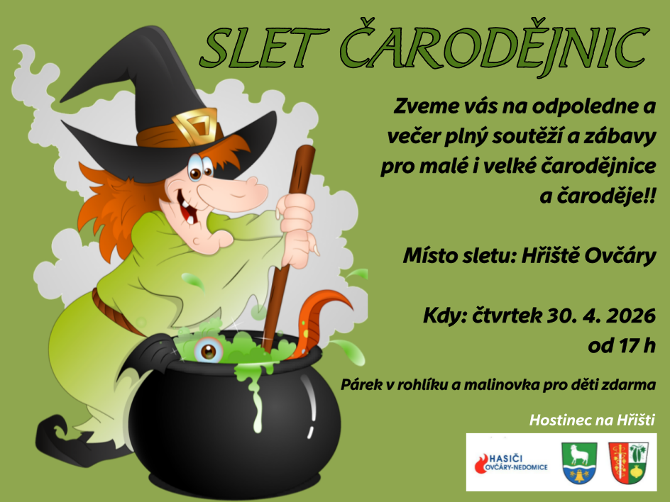 Slet čarodějnic na hřišti c Ovčárech ve čtvrtek 30.4. od 17:00 hodin